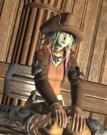 Raeje Draeka AKA 'Green fairy,' 'Green Bean', 'Jester Bard,' 'Bard Pants', or 'Rae' is known in Eorzea for her comedy songs. ((Eorzea's Bo Burnham))Born in Othard, Raeje moved to Eorzea as a refugee at a very early age, and remembers little of her Xaela tribe, but is told that poetry was a big part of their heritage.Raeje hasn't seen her parents since her early childhood when they sailed out for a negotiation mission and never returned. She was raised in a tavern in Thanalan with her uncle. This is where she learned to become a comedian.
