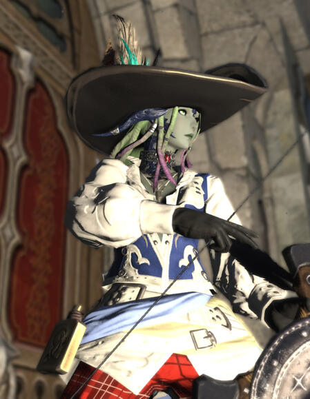 After the loss of her home and uncle when she was seventeen, Raeje suffered from a year of grief, before doing the las thing that her uncle had requested. Raeje went in search of the 'magic'. She had no idea what magic her uncle was talking about, but ten years later, at twenty eight years old, Raeje was now travelling Eorzea as a comedy bard.She has worked in some permanent positions as an in house bard at taverns before, and even been an actor in a few theatres. Her current home is in Shirogane with the Obsidian Blades Theater troupe, although she does have her own small apartment/bar where she practices writing, performing, and drinking. This is the thing she loves most in life second only to being a bard. Her favorite drink is absinthe, and some believe she is the real green fairy.
